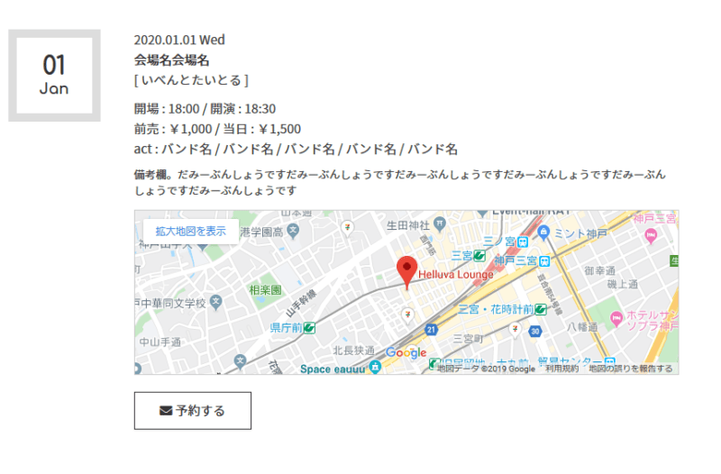ライブ予定がない場合は、これも自動で「現在、ライブの予定はありません。」の文言が表示されます。