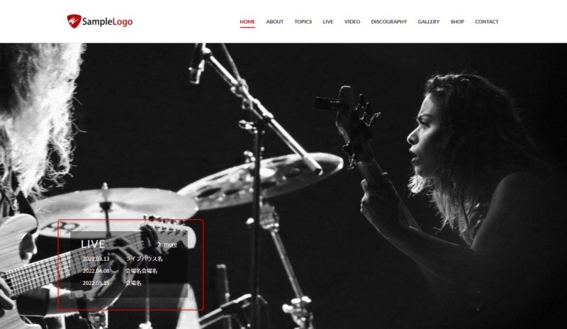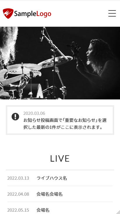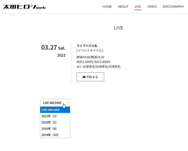 また、ライブ情報の開催年や開催月をカテゴリー登録することでLIVEページの「LIVE ARCHIVE」からも過去のライブ情報が閲覧できます。