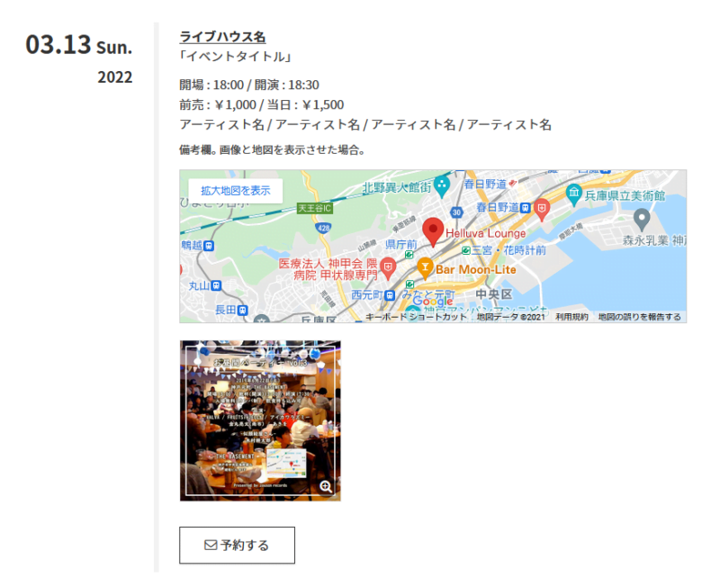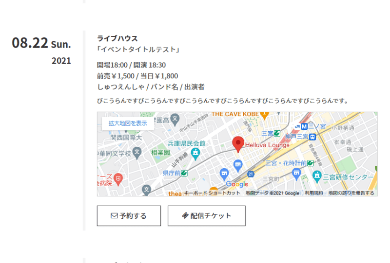 ライブ予定がない場合は、これも自動で「現在、ライブの予定はありません。」の文言が表示されます。
