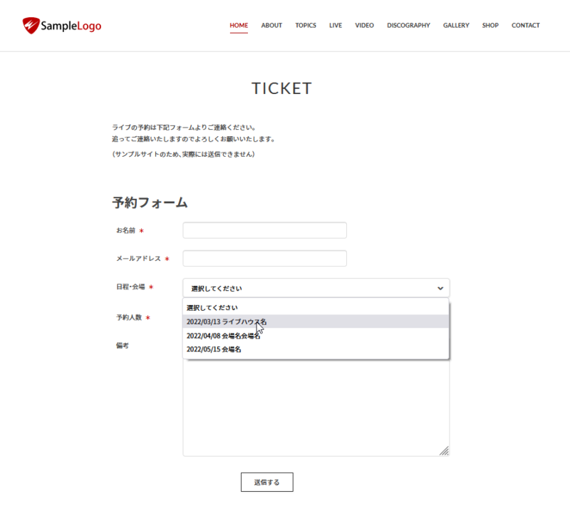 また、「予約する」ボタンで予約ページへ飛んだ場合の予約フォーム画面がこちら→サンプルサイト