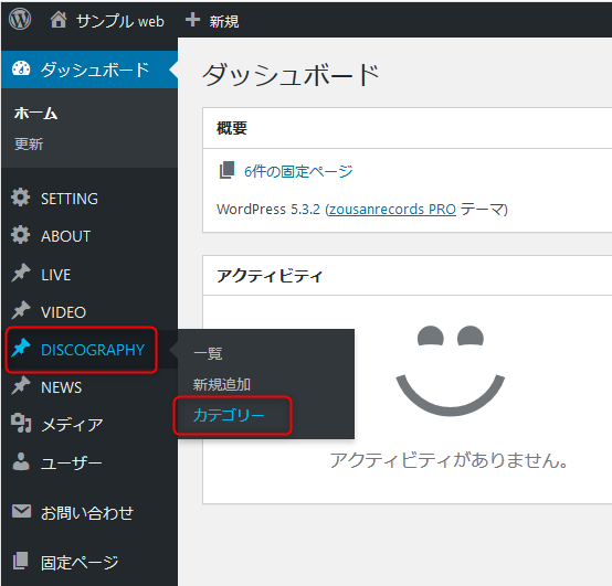 バージョン2.0.0より、管理画面からカテゴリーの追加、変更ができるようになりました。管理画面メニュー